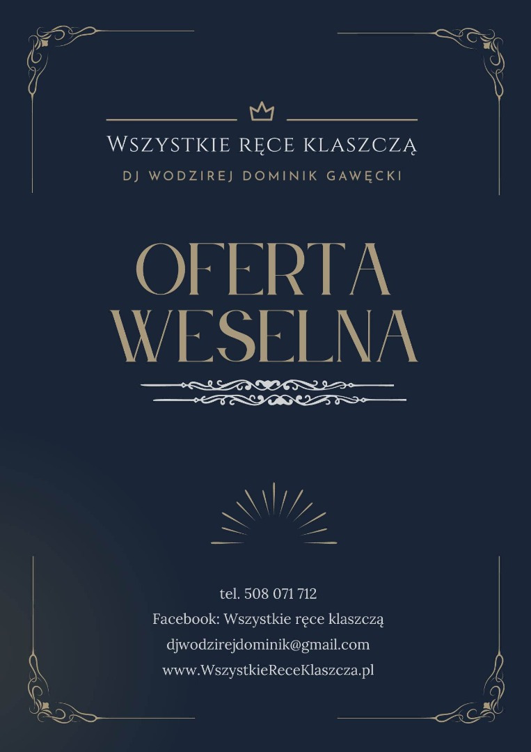 - Dominik Gawęcki to DJ z wieloletnim doświadczeniem, który zdobył uznanie w całej Polsce. Jego umiejętność dostosowania repertuaru do różnych gustów sprawia, że każda impreza staje się wyjątkowa. Projekt „Wszystkie ręce klaszczą” to jego znak rozpoznawczy – niekończąca się energia, radość i dobra zabawa dla wszystkich gości, bez względu na wiek.